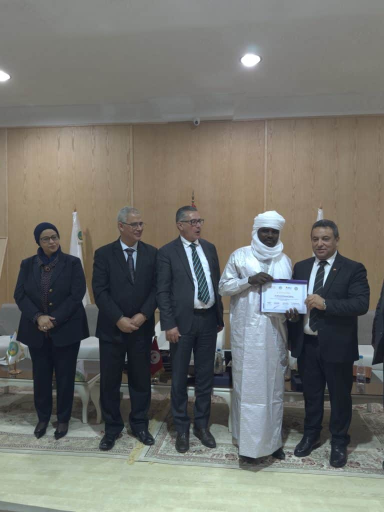 La cérémonie de clôture et de remise des certificats s’est déroulée le jeudi 9 avril 2026 à l’auditorium de l’IRA. Elle a été honorée par la présence de délégations de haut niveau des organisations partenaires, notamment le directeur général de l’IRA, le directeur général de l’ATCT, le directeur des opérations de l’AFTAAC, le gouverneur de Médenine (Tunisie) et le coordinateur de l’UA-SAFGRAD, le Dr Ahmed Elmekass.