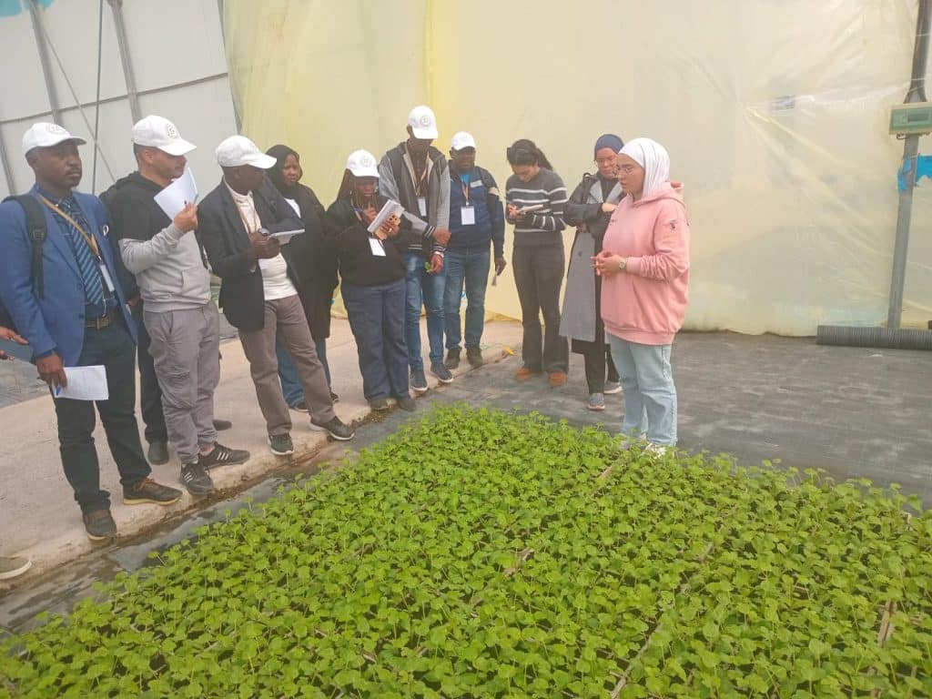 Le Bureau de recherche et de développement sur les céréales vivrières en zones semi-arides de l’Union africaine (AU-SAFGRAD), l’un des bureaux techniques spécialisés (BTS) du département de l’agriculture, du développement rural, de l’économie bleue et de l’environnement durable (ARBE), organise une formation sur la conception, l’exploitation et la maintenance (CEM) des technologies agricoles climato-intelligentes pour la transformation des systèmes agroalimentaires en Afrique. Cette formation intensive de 10 jours a été organisée en collaboration avec le Fonds arabe d’assistance technique aux pays africains (AFTAAC) de la Ligue des États arabes et l’Agence tunisienne de coopération technique (ATCT). Le programme, combinant séminaires, travaux pratiques et visites de terrain, a été animé par des experts techniques et de terrain issus d’instituts de recherche agricole et d’exploitations agricoles commerciales. L’objectif principal de cette formation était de combler le déficit de capacités des États membres de l’UA et de renforcer les compétences du personnel d’appui agricole public en matière de conception, d’exploitation et de maintenance de systèmes d’irrigation et de serres modernes, technologies agricoles climato-intelligentes (ACI) permettant d’atténuer la baisse de la productivité agricole due à la variabilité climatique. Cette formation s’adresse aux jeunes ingénieurs et aux experts agricoles en début de carrière travaillant dans les ministères, départements et agences (MDA) publics. Les participants de onze (11) États membres francophones de l’Union africaine (Algérie, Bénin, Cameroun, Tchad, Côte d’Ivoire, Guinée équatoriale, Mauritanie, Maroc, Sénégal, Togo et Tunisie) ont directement bénéficié de cette formation. Cette formation annuelle, qui sert également de formation de formateurs, vise à renforcer les capacités systémiques des États membres de l’Union africaine. Les bénéficiaires sont chargés et encouragés à organiser des sessions de formation complémentaires dans leurs pays respectifs, portant sur les technologies d’agriculture climato-intelligente (ACI), afin de constituer un vivier national d’experts capables d’accompagner la transformation des systèmes agroalimentaires. La formation de 2026 a porté sur les technologies de serres, l’hydroponie (aéroponie, aquaponie, culture en eau profonde et techniques de film nutritif), la micro-irrigation, la collecte et l’utilisation des eaux de pluie, la fertirrigation, la gestion de la qualité de l’eau et de la salinité des sols, l’agriculture de conservation et l’agriculture de précision. La formation a également abordé la gestion des conflits liés au partage des ressources naturelles (eau), la législation sur l’eau, ainsi que les politiques et le soutien institutionnel favorisant le déploiement à grande échelle des technologies d’ACI. L’Institut de recherche sur les régions arides (IRA) de Tunisie a accueilli la formation de dix jours.